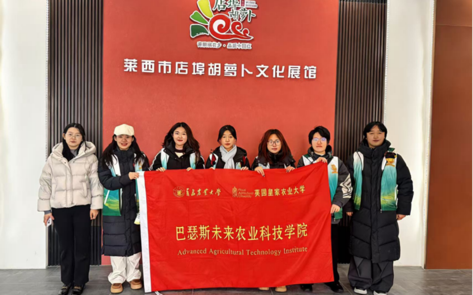 1月19日,实践团队首先走进莱西市店埠镇胡萝卜文化展馆,系统了解当地胡萝卜产业的发展历程与品牌内涵。在讲解员引导下,团队成员深入认识了店埠胡萝卜“红皮、红瓤、红心”的“三红”品质特征及其地理标志认证背景。从元明时期屯兵设寨的农业起源,到20世纪90年代产业化探索,再到如今的规模化、标准化、品牌化发展,展馆内详实的图文资料和实物展示生动呈现了店埠胡萝卜由传统作物向优势产业转型升级的发展脉络。