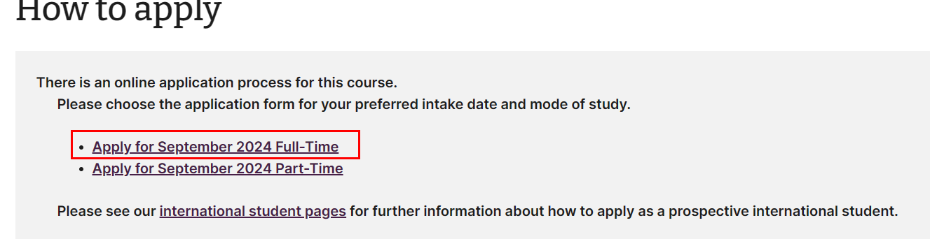 在2024年3月15日前自行完成线上注册,点击线上报名通道对应的链接,点击上方Apply→Apply for October 2024 Full-Time→New Account→按要求填写个人信息,上传材料。