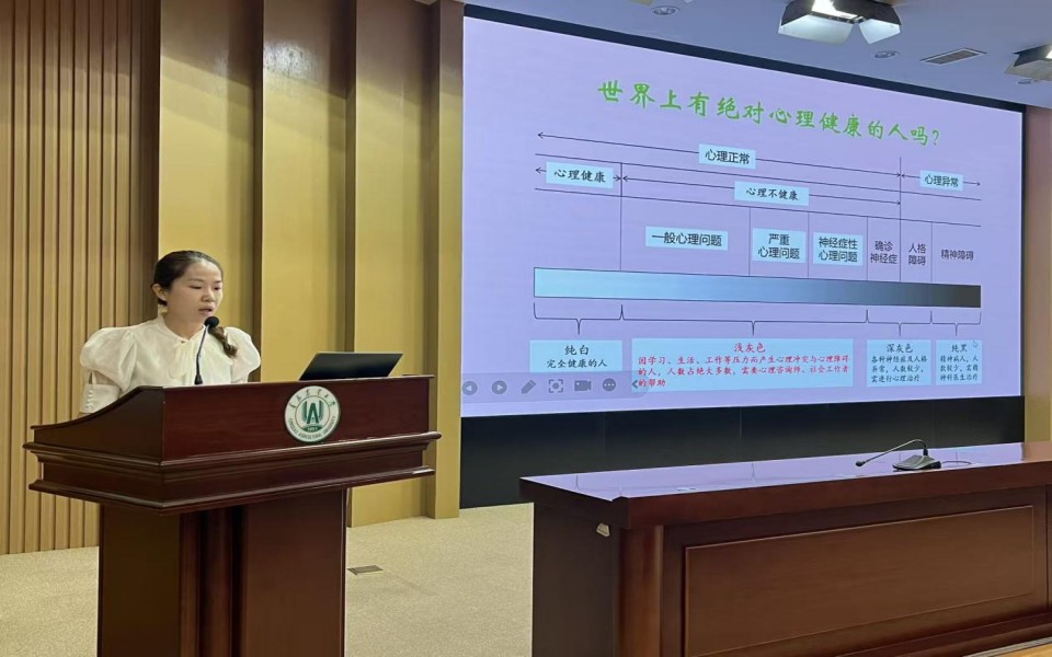 葛得铭聚焦心理压力的识别与调试,与学生干部交流了心理健康的重要性,为学生干部提供了调节压力的可行性方法,帮助其正确认识了压力,学会科学应对问题,保持良好的心理状态。