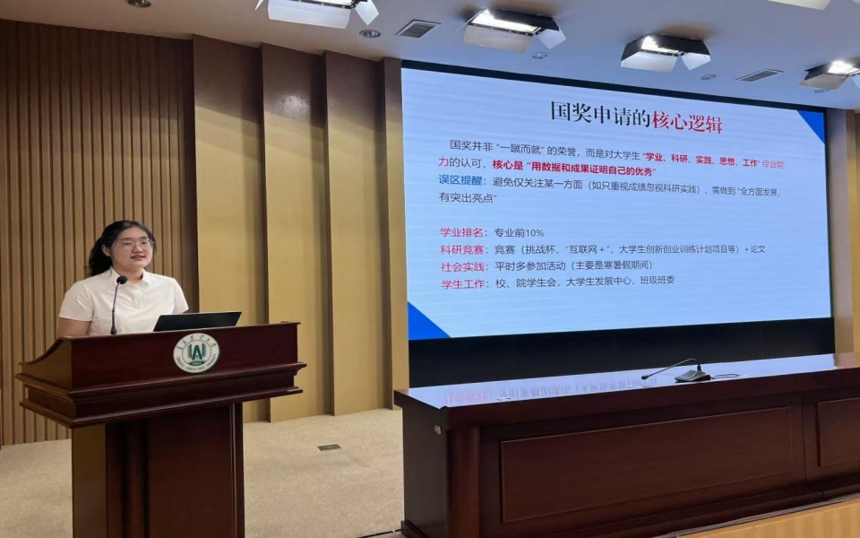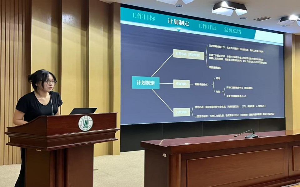 刘佳艺详细讲解了围绕创新创业竞赛的申报流程,帮助学生干部更好地理解和参与创新创业实践。闫彤煖分享了申请国家奖学金的经历,解读了相关政策,给予学生干部经验启示。翟羽涵带领学生干部深入学习了“目标—计划—执行—复盘”的全链路工作模式,帮助大家系统高效掌握学生干部工作的“秘诀”。刘瑞通过展示优秀PPT模板,传授了高质量PPT的设计方法和技巧。邸玉淇围绕视频剪辑技术讲解了学习视频剪辑的必要原因,帮助学生干部认识到掌握视频剪辑技能的必要性。吴珂分享了在实习的经历,从实习前的准备、实习过程中的困难、收获与成长三个方面展开介绍,为学生干部提供了宝贵的实习经验与示范。