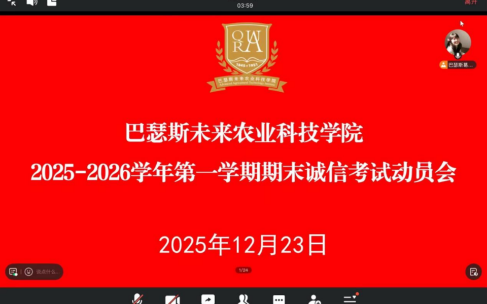为强化优良考风考纪,12月22日至23日,ylzz总站线路检测,yl34511线路中心在学术会馆第二报告厅和线上平台召开2025年期末诚信考试动员大会。会议由学院辅导员葛得铭主持,院长刘焕奇出席并讲话。英国皇家农业大学中国中心专员李迎、学院全体学生参会。
