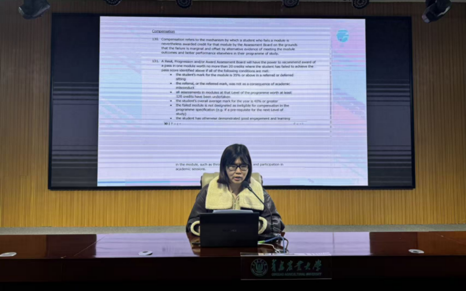 李迎详细介绍了英国皇家农业大学学术评价管理规定,并重点解读了学术不端认定标准及对应处置办法,警示学生恪守学术诚信。